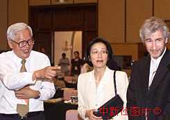 羅豪才與袁明和諾倫交談(圖文) 2000年6月21日 18:03 ![]() 全國政協(xié)副主席、“21世紀論壇”2000年會議組委會副主席羅豪才(左)16日在會議休息時,與北京大學(xué)國際關(guān)系研究所所長袁明(中)、英國劍橋大學(xué)“中國管理辦公室”高級經(jīng)濟學(xué)家諾倫在一起談笑風(fēng)生。中新社記者:李剛