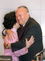 圖文詳訊:香港特區(qū)政務(wù)司司長(zhǎng)陳方安生辭職 2001年1月12日 19:51 ![]() 董建華與提出辭職的陳方安生共同出席記者會(huì)。中新社記者 任海霞 攝 ![]() 董建華與陳方安生擁抱。 中新社香港一月十二日電(記者趙勝玉)香港特區(qū)政務(wù)司司長(zhǎng)陳方安生今天以個(gè)人原因提出辭職。特首董建華已接受她的辭呈。 董建華今天下午在會(huì)見記者時(shí),稱贊陳方安生近四十年的公務(wù)員生涯“表現(xiàn)卓越”。他說(shuō),在過(guò)去三年半里,陳太出任政務(wù)司司長(zhǎng)的職位,為香港順利過(guò)渡和成功落實(shí)“一國(guó)兩制”作出重大貢獻(xiàn)。在她的領(lǐng)導(dǎo)下,香港公務(wù)員隊(duì)伍在回歸前后順利過(guò)渡,保持了整體的穩(wěn)定。作為公務(wù)員之首,她也落實(shí)了一系列公務(wù)員改革的措施,提高公共服務(wù)水平。他說(shuō),陳太在不同的政策方面,給與特首許多寶貴的意見和大力支持。在主要官員的共同努力下,我們一同克服了亞洲金融風(fēng)暴,致力香港經(jīng)濟(jì)復(fù)蘇,在教育、市政等主要社會(huì)服務(wù)方面推動(dòng)多項(xiàng)改革。共同為香港二十一世紀(jì)的發(fā)展確定了方針。 董建華祝陳太退休后生活愉快,時(shí)時(shí)展露燦爛的笑容。特首講話后,與陳太擁抱在一起。 陳方安生在隨后會(huì)見記者解釋提前退休的原因時(shí)說(shuō),她認(rèn)為目前退休的時(shí)機(jī)最為合適,她的離開不會(huì)影響政府的運(yùn)作。她還數(shù)度否認(rèn)關(guān)于與特首不和的傳言,她說(shuō),與特首合作一直十分愉快。她透露,退休后沒(méi)有任何計(jì)劃,只希望多與家人在一起。 香港特別行政區(qū)政務(wù)司司長(zhǎng)是行政長(zhǎng)官的首要顧問(wèn),也是香港十九萬(wàn)公務(wù)員的首長(zhǎng)。 陳方安生,一九四零年生于上海,一九四八年隨家人移居香港,并在香港接受教育。(完) 相關(guān)報(bào)道:新聞人物:香港特區(qū)政務(wù)司司長(zhǎng)陳方安生 |