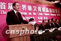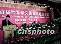 組圖:首屆世界華文傳媒論壇在南京開幕 2001年09月16日 14:42 ![]() 首屆世界華文傳媒論壇十六日在南京開幕,中國國務(wù)院僑務(wù)辦公室副主任兼中國新聞社社長(zhǎng)劉澤彭主持會(huì)議。中新社記者 王瑤 攝 ![]() 首屆世界華文傳媒論壇十六日在南京開幕,中國新聞社總編輯郭招金在開幕式上作《全球化浪潮中的海外傳媒的定位與角色》的發(fā)言。中新社記者 王瑤 攝