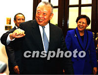 圖文:特首董建華就施政報告與香港議員對話 2001年10月12日 06:13 ![]() 香港特區(qū)行政長官董建華,10月11日在香港立法會就他昨日所做的2001年施政報告接受議員提問。中新社記者 任晨鳴 攝 ![]() 香港立法會主席范徐麗泰,10月11日陪同行政長官董建華到立法會回答議員關(guān)于施政報告的提問。中新社記者 任晨鳴 攝