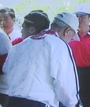 圖文:被潑墨水、撒尿液 李登輝拉票又被擲雞蛋 2001年11月21日 09:06 ![]() 去年5月27日 李登輝在住家附近被潑紅墨水。 ![]() 李登輝出門總是惶惶然 ![]() 李登輝狼狽不堪 中新網(wǎng)香港11月21日消息:臺(tái)北訊,退而不休的李登輝昨晚在云林縣北港鎮(zhèn)為“臺(tái)聯(lián)”黨“立委”候選人拉票時(shí),突然被臺(tái)下民眾擲雞蛋,并被痛罵“禍臺(tái)殃民”,場面一度混亂。 昨晚8時(shí)25分左右,李登輝開始演講后不久,突然被臺(tái)下新黨籍“立委”候選人何振盛用紙張包裹一顆雞蛋朝臺(tái)上丟擲。 何振盛在被帶上警車之前,還大聲罵:“李登輝禍臺(tái)殃民”、“李登輝賣黨求榮”等。 警方在偵訊時(shí),何振盛表示,李登輝分化族群,是造成臺(tái)灣的亂源,他是要叫李登輝不要再出現(xiàn)。 李登輝下臺(tái)以后,不守退休后“去山區(qū)傳教”的承諾,再次跳出來作秀,受到臺(tái)灣諸多民眾的指責(zé),更有民眾聲稱組成“鋤奸團(tuán)”,要為民除害。 據(jù)聯(lián)合報(bào)報(bào)道,除了昨天遭雞蛋襲擊外,李登輝至少還發(fā)生過五次受到民眾暗中攻擊的狀況。 包括去年當(dāng)局領(lǐng)導(dǎo)人選舉后,被憤怒的民眾潑了一身的紅墨水,以及今年九月間在臺(tái)南縣身體不適、本月初在北宜公路上嚴(yán)重暈眩嘔吐、兩個(gè)月前還在大高雄地區(qū)發(fā)生過群眾暗持小刀伺機(jī)偷襲,以及群眾攜帶內(nèi)裝尿液的塑料袋計(jì)劃攻擊的事件。 相關(guān)報(bào)道:圖文:李登輝退而不休帶病造勢(shì)差點(diǎn)昏迷不醒 相關(guān)報(bào)道:圖文:李登輝住處為違章建筑 臺(tái)北市限期拆除 相關(guān)報(bào)道:多名李登輝保鏢因與“臺(tái)聯(lián)”意見不和申退 相關(guān)報(bào)道:國民黨忍無可忍終于開鍘 宣布撤銷李登輝黨籍 相關(guān)報(bào)道:不堪鏡頭讓女傭惶恐萬分 臺(tái)新書大曝李登輝緋聞 相關(guān)報(bào)道:《世界日?qǐng)?bào)》:處分漢奸內(nèi)賊李登輝 相關(guān)報(bào)道:李登輝再次鼓吹小泉參拜靖國神社很自然 相關(guān)報(bào)道:日本雜志證實(shí)李登輝曾接受采訪 支持小泉參拜 相關(guān)報(bào)道:臺(tái)灣“鋤奸團(tuán)”要格殺李登輝護(hù)衛(wèi)加派兩倍 相關(guān)報(bào)道:不容破壞統(tǒng)一 臺(tái)灣一男子造炸彈迎接李登輝 相關(guān)報(bào)道:調(diào)查顯示,李登輝退而不休逾半臺(tái)灣民眾搖頭 相關(guān)報(bào)道:李登輝赴日活動(dòng)共五天 治病不足兩小時(shí) 相關(guān)報(bào)道:多圖:臺(tái)灣70歲老兵怒斥李登輝禍國毀黨 相關(guān)報(bào)道:臺(tái)灣一女子攔路自認(rèn)李登輝骨肉 相關(guān)報(bào)道:多圖:李登輝今早遭憤怒民眾潑灑紅墨水 |