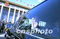 圖:美國使節(jié)驅(qū)車旁聽人大開幕會(huì) 2002年03月06日 17:06 ![]() 美國使節(jié)在北京人民大會(huì)堂旁聽九屆全國人大第五次會(huì)議后,驅(qū)車駛離天安門廣場(chǎng)。中新社記者 劉殊瑾 攝