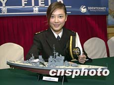 圖:應采兒為網(wǎng)上游戲《諜海雄師》出任代言人 2002年03月19日 19:37 ![]() 新晉女影星應采兒19日在香港為網(wǎng)上游戲《諜海雄師》出任代言人舉行記者會,應采兒一身海軍服飾并加上戰(zhàn)艦模型,頗具威風。中新社傳真 鄧慶樂 攝
