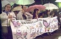 日本上千民眾雨夜游行反對(duì)“有事法制”(多圖) 2002年03月24日 07:30 ![]() 來(lái)自勞動(dòng)、教育、醫(yī)療、宗教等民間團(tuán)體的三千五百多名日本民眾,22日晚在東京市內(nèi)一個(gè)公園里冒雨集會(huì),反對(duì)政府制定“有事法制”。中新社圖 陶光雄 攝
