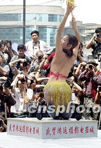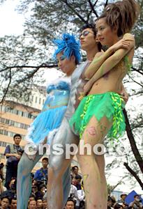 組圖:廣州街頭展示人體彩繪吸引眾多攝影發(fā)燒友 2002年04月06日 18:03 ![]() 廣州某攝影器材城為吸引顧客,六日上午在門(mén)口公開(kāi)展示人體彩繪,吸引上百名發(fā)燒友前來(lái)拍攝。中新社圖 柯小軍 攝