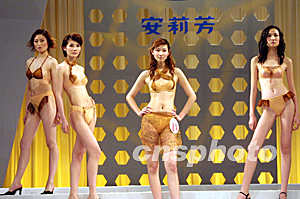 圖:上海國際服裝文化節(jié)上演時(shí)尚內(nèi)衣秀 2002年04月27日 09:02 ![]() 二○○二“中華杯安莉芳”國際內(nèi)衣設(shè)計(jì)大賽二十五日在上海世貿(mào)商城舉行。圖為模特在展示中外年輕設(shè)計(jì)師們設(shè)計(jì)的富有新意的內(nèi)衣。中新社圖 湯彥俊 攝