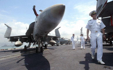 圖:美國(guó)航空母艦“小鷹”號(hào)今天上午抵達(dá)香港 2002年04月29日 17:54 美國(guó)航空母艦“小鷹”號(hào)今天上午抵達(dá)香港,進(jìn)行補(bǔ)給。這次訪港的美國(guó)艦隊(duì)一共有5艘軍艦,大約有6000名官兵!靶→棥碧(hào)是美國(guó)海軍現(xiàn)役軍艦中歷史最久的航空母艦。法新圖