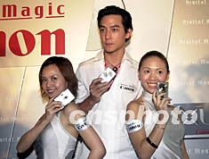 圖:佳能亮麗小姐與吳彥祖共同展示新產(chǎn)品 2002年04月30日 19:51 ![]() 影星吳彥祖30日在香港出席“佳能”舉行“Canon Digital Magic型機(jī)一觸大派對(duì)”記者會(huì),“佳能”特別安排兩位亮麗小姐與吳彥祖共同展示全新數(shù)碼攝影機(jī)。中新社傳真 鄧慶樂 攝