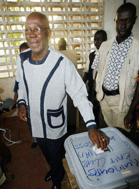 圖:5月14日塞拉利昂舉行總統(tǒng)選舉 2002年05月14日 21:10 5月14日,塞拉利昂舉行了內(nèi)戰(zhàn)結(jié)束后的首次總統(tǒng)選舉,此次共有9個(gè)候選人參加總統(tǒng)競(jìng)選,參加投票的選民預(yù)計(jì)將達(dá)到230萬(wàn)。中新網(wǎng)圖