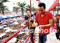 圖:任達華為珠海福利事業(yè)獻愛心 2002年05月20日 19:43 ![]() 十九日下午,香港著名影星任達華專程來到珠海市,為該市福利彩票發(fā)行中心舉辦的“六千萬元即開型福利彩票發(fā)行活動”助興,為支持珠海市的福利事業(yè),任達華當場拿出一千元購買福利彩票。中新社記者 石頭 攝