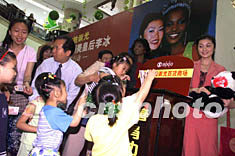 ![]() 亞洲美皇后李冰(右一)與世界小姐達(dá)雷戈,二十一日在北京莊勝崇光商場參加關(guān)愛孤殘兒童慈善行動(dòng),并在現(xiàn)場捐款。毛建軍 攝