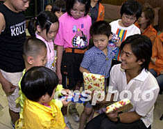 圖:鄭伊健親善探訪保良局派送禮物 2002年05月27日 20:00 ![]() 歌影紅星鄭伊健及其國際歌迷會成員27日在香港親善探訪保良局,參觀該局兒童宿舍及并與局童共同游玩。鄧慶樂 攝