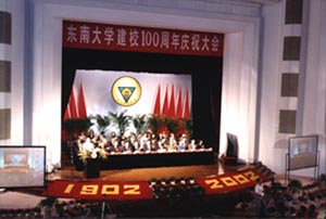 江澤民李鵬李瑞環(huán)為東南大學百年華誕題詞致賀 2002年06月01日 09:40 ![]() 東南大學建校100周年慶祝大會主會場 5月31日是東南大學建校一百周年的喜慶日子。樹木蒼翠、碧草茵茵的東大校園早早披上了節(jié)日的盛裝,四萬多名師生與海內(nèi)外校友在久負盛名的大禮堂以及各分會場隆重集會,共慶母校百年華誕。 江澤民總書記為東南大學校慶的題詞是:“嚴謹求實,團結(jié)奮進,把東南大學建設(shè)成一流人才和創(chuàng)新成果的培育基地”。李鵬的題詞是:“傳承百年優(yōu)良傳統(tǒng),培育更多建國人才”;李瑞環(huán)的題詞是:“求是篤行,育才報國”。李鐵映、許嘉璐、費孝通,原中央大學校長顧毓琇等也為東南大學百年校慶題詞。 全國政協(xié)副主席錢偉長,全國政協(xié)科教文衛(wèi)體委員會主任劉忠德,江蘇省有關(guān)領(lǐng)導陳煥友、曹克明,諾貝爾獎獲得者丁肇中,國家地震局局長宋瑞祥,教育部副部長周濟、韋鈺,科技部副部長劉燕華等出席了慶典大會。 國家教育部部長陳至立,中共江蘇省委書記回良玉、鐵道部部長傅志寰,中國工程院士丁衡高上將,臺灣“中央大學”校長劉兆漢專門發(fā)來了講話錄像或賀電。 大會由東南大學黨委書記胡凌云教授主持。東南大學校長顧冠群院士在慶祝大會上作了題為“秉承百年優(yōu)良傳統(tǒng),開創(chuàng)世紀新的輝煌”的報告。他說,東南大學肇始于1902年創(chuàng)立的三江師范學堂,此后,歷經(jīng)兩江師范學堂、南京高等師范學校、國立東南大學、國立中央大學、南京工學院等重要發(fā)展時期,走過了一百年征程。現(xiàn)在的東南大學有10個國家重點學科,13個一級學科博士學位授權(quán)點,53個二級學科博士點;10個博士后科研流動站;現(xiàn)學校共有40多個院、系,104個碩士點,52個本科專業(yè),是一所以工為主,工、理、醫(yī)、文、管多學科協(xié)調(diào)發(fā)展的全國重點大學。學,F(xiàn)有兩院院士7位,國家攀登計劃認知科學重大項目首席科學家1人,國家杰出青年基金獲得者8人,國家“百千萬人才工程”培養(yǎng)對象7人,國家“863”計劃領(lǐng)域?qū)<椅瘑T會和主題專家組成員7人,國家重點基礎(chǔ)研究發(fā)展規(guī)劃(973)專家顧問組成員1人,教育部跨世紀人才基金獲得者13人,江蘇省“333工程”培養(yǎng)對象72人!伴L江學者獎勵計劃”特聘教授崗位16個,現(xiàn)已聘特聘教授14人。百年東大,可謂是我國近現(xiàn)代高等教育發(fā)展的縮影。百年東大,為推動中國現(xiàn)代化進程和社會發(fā)展發(fā)揮了重要作用。校訓“止于至善”所寓意的追求盡善,追求完美,追求真理的辦學理念,已銘刻在今日東大人的心中。新的百年,我們必須培養(yǎng)大批具有創(chuàng)新精神和實踐能力的高級人才,使東大始終成為社會、經(jīng)濟和科技進步與發(fā)展的思想庫和動力源。到21世紀中葉力爭把東南大學建設(shè)成為綜合性、研究型、國際化的世界一流大學。 最后,教育部副部長周濟在慶祝大會上發(fā)表講話,他希望東南大學樹立開放式辦學理念,通過為社會尤其是為江蘇提供全方位高水平的服務(wù),來贏得支持,開拓學校改革與發(fā)展的廣闊空間。 美國馬里蘭大學校長牟德教授、重慶大學校長吳中福教授分別代表海內(nèi)外兄弟大學在會上致辭,飛利浦公司執(zhí)行副總裁萬德坡先生以及教師代表和學生代表等也在大會上講話或發(fā)言。印度尼西亞力寶集團董事長李文正先生也出席了大會。 5月31日,在20世紀偉大的物理學家吳健雄先生誕辰90周年之際,一座旨在彰顯其輝煌的科學業(yè)績和高尚的道德風范的紀念館在其母校東南大學隆重開館,為沉浸在建校100周年的喜慶氣氛中的東南大學增添了又一道亮麗的風景。國家教育部部長陳至立為吳健雄紀念館開館發(fā)來賀電。出席百年慶典大會的領(lǐng)導和嘉賓參加了開館儀式。中共江蘇省委副書記任彥申、華裔諾貝爾獎獲得者丁肇中博士、東南大學校長顧冠群院士、吳健雄先生之子袁緯承先生在儀式上致辭。 吳健雄是世界公認的最杰出的女性物理學家、世界物理學界的傳奇人物,被譽為“核子物理女皇”、“中國的居里夫人”。她1912年5月31日出生于江蘇太倉瀏河,1930年以優(yōu)異成績被保送到東南大學前身——國立中央大學數(shù)學系,1931年轉(zhuǎn)入物理系。1936赴美深造。1957年她通過實驗首次驗證了“弱相互作用下宇稱不守恒”的理論,從而使李政道、楊振寧榮獲了當年的諾貝爾物理學獎。1997年2月16日,吳健雄在紐約家中去世。1999年,為紀念吳健雄偉大的一生及輝煌的科學業(yè)績,使她的科學精神和人格風范能長駐天地,激勵后學,中共中央、國務(wù)院批準在其母!獤|南大學校園內(nèi)建造吳健雄紀念館,這也是全球第一個華人科學家紀念館。 東南大學編輯出版的《吳健雄:獻身物理科學的一生》紀念畫冊首發(fā)式也與吳健雄紀念館開館儀式同時舉行。該畫冊由全國人大副委員長周光召院士題寫書名,李政道、楊振寧、丁肇中等六位諾貝爾獎獲得者分別為畫冊題詞。(鄭立琪、周 虹)