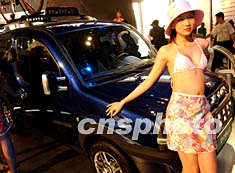 ![]() 身穿沙灘泳裝的吉普女郎,在北京炎熱天氣里的六月國際車展上充滿濃郁的青春氣息。賈國榮 攝
