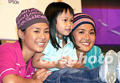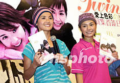 ![]() 樂(lè)壇女子組合Twins兩位成員蔡卓妍(右)、鍾欣桐8日1日在香港舉行「愛(ài)上色彩之歷險(xiǎn)」寫(xiě)真集簽名會(huì),大批Twins歌迷到場(chǎng)支持偶像,Twins被一位可愛(ài)的小女孩吸引合照。鄧慶樂(lè) 攝