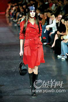 開(kāi)場(chǎng)白的黑色系列,偶爾閃出嬉皮味道極重的反光感,那是臉無(wú)血色的美麗訴說(shuō);與黑色相反的白色,并沒(méi)有純粹如春夏系列的爛漫,相反多了幾分質(zhì)樸感,同樣也許是材質(zhì)不同所造就的;而搶眼的烈紅就增添了一些猶如童話(huà)般的魅力,美得叫人吃驚;最后壓軸登場(chǎng)的紫色長(zhǎng)裙由超模琦琦演繹,色彩的幻變至此,已經(jīng)完全達(dá)到一個(gè)新高度。 (黃嘉麗)