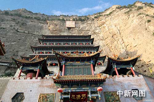 雄偉壯麗的大羅宮,兩側(cè)是神秘奇險(xiǎn)的白云洞和白云庵。白云洞位于大羅宮北側(cè),百米崖壁上有一洞口,柴扉半啟,是資深高道閉關(guān)辟谷之所。這里,陰雨前常有白云飄出,故稱白云洞。清代乾隆年間介休名士王佑曾賦“深山多白云,洞在云深處,竟日寂無人,白云自來去”的詩句,道出了這一景觀的奇妙和獨(dú)特。白云庵深藏于百米懸崖上一天然石洞中,內(nèi)有釋迦牟尼和文殊、普賢塑像,為宋代風(fēng)格。塑像身后有6塊0.6平方米的石板,上面刻有《金剛經(jīng)》經(jīng)文,雖年深日久,但保存基本完好。在此原無徑可尋的懸崖絕壁之上造像、勒石,其難度之大可想而知。古人那種不畏艱險(xiǎn)的執(zhí)著追求,不禁使人嘆服!現(xiàn)在已筑起了懸空通道,供游客觀賞此庵。