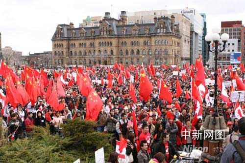 中新網(wǎng)渥太華4月13日電 4月13日下午,加拿大首都渥太華國會(huì)山廣場(chǎng)被鮮艷的中加兩國國旗和奧林匹克旗幟淹沒,近萬名來自加拿大各地的華人聚集在一起,舉行“宣傳西藏真相,維護(hù)祖國統(tǒng)一”大型集會(huì)活動(dòng)。以下是渥太華《七天新聞》提供給本網(wǎng)的發(fā)自現(xiàn)場(chǎng)圖片報(bào)道。