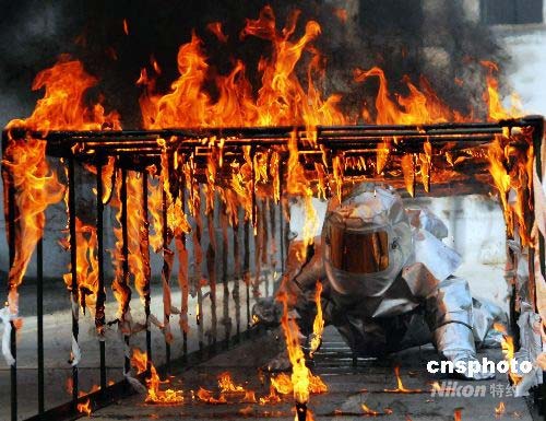 4月29日,90名三峽消防官兵在巍巍三峽大壩下,集體宣誓:確保奧運圣火在三峽壩區(qū)順利傳遞。當天,三峽特勤消防大隊還開展了“迎奧運倒計時100天”大比武活動,不斷提高部隊快速反應(yīng)和處置突發(fā)事件的能力。中新社發(fā) 方佩 攝