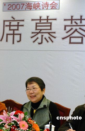 十二月二十二日,由福建省文學(xué)藝術(shù)界聯(lián)合會(huì)、《臺(tái)港文學(xué)選刊》雜志社、福建省文學(xué)藝術(shù)對(duì)外交流中心主辦的2007海峽詩會(huì)“天和地諧,人和詩諧——席慕蓉海峽西岸行”在福州拉開序幕,并于當(dāng)天在福建會(huì)堂舉行了席慕蓉作品研討會(huì)。圖為席慕蓉參加研討會(huì)。中新社發(fā) 王東明 攝