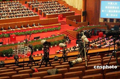 三月十三日下午,全國政協(xié)十一屆一次會議在北京人民大會堂舉行第四次全體會議,選舉政協(xié)第十一屆全國委員會主席、副主席、秘書長、常務(wù)委員。在委員填寫選票時,大會請與會采訪記者暫時回避以示尊重。中新社發(fā) 潘索菲 攝