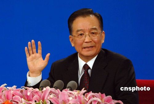 3月18日上午,十一屆全國人大一次會議在北京人民大會堂閉幕,國務院總理溫家寶于會后率李克強、回良玉、張德江、王岐山四位副總理會見中外記者。中新社發(fā) 王東明 攝