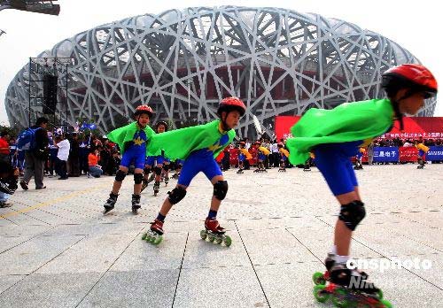 北京奧運(yùn)會(huì)倒計(jì)時(shí)100天群眾馬拉松接力活動(dòng)暨2008年北京國(guó)際長(zhǎng)跑節(jié),4月30日上午在北京國(guó)家體育場(chǎng)公共區(qū)隆重舉行,活動(dòng)中馬拉松接力賽、群眾建身長(zhǎng)跑、群眾體育展示等內(nèi)容豐富多彩、氣氛活躍祥和。此項(xiàng)活動(dòng)由國(guó)家體育總局、中國(guó)奧委會(huì)、北京市政府、第29屆奧林匹克運(yùn)動(dòng)會(huì)組委會(huì)主辦。中新社發(fā) 宋吉河 攝