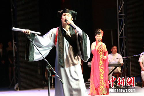 趙本山壓軸登臺,展現(xiàn)多才多藝。他先與臺灣知名演員吳忠憲、侯佩岑合作小品《演員的煩惱》,又與觀眾演唱《月亮代表我的心》,二胡獨(dú)奏《賽馬》。最后在臺灣藝人家家演唱《但愿人長久》聲中,趙本山揮毫《水調(diào)歌頭•明月幾時(shí)有》當(dāng)場義賣,作品被一位專程來臺的大陸企業(yè)家以508萬新臺幣競得,連同當(dāng)晚的演出所得,全部捐予臺灣2家慈善機(jī)構(gòu)。
