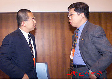 李澤楷與新浪網(wǎng)總裁 2000年6月16日 08:46 ![]() 盈科拓展集團主席兼行政總裁李澤楷(左)15日在北京舉辦的“21世紀論壇”2000年會議上,與新浪網(wǎng)總裁兼首席執(zhí)行官王志東交談。中新社記者 李剛 攝