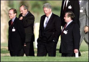 圖文:中東緊急峰會(huì)首日無(wú)進(jìn)展 2000年10月17日 07:19 克林頓希望以巴雙方能化解歧見(jiàn),停止沖突。 克林頓為中東和平多年來(lái)盡力斡旋,在峰會(huì)休息時(shí)間,也出現(xiàn)了這個(gè)打呵久的倦態(tài)。 中新網(wǎng)北京10月17日消息:綜合通訊社報(bào)道,旨在結(jié)束巴以流血沖突的中東問(wèn)題多邊首腦會(huì)議﹐星期一在埃及的紅海渡假勝地沙姆沙伊赫開(kāi)幕﹐但巴勒斯坦文化新聞部長(zhǎng)拉博對(duì)記者說(shuō)﹐會(huì)議至今沒(méi)有取得進(jìn)展。 綜合外電報(bào)道,聯(lián)合國(guó)秘書(shū)長(zhǎng)安南﹑巴勒斯坦民族權(quán)力機(jī)構(gòu)主席阿拉法特﹑以色列總理巴拉克﹑美國(guó)總統(tǒng)克林頓﹑約旦國(guó)王阿卜杜拉和歐盟負(fù)責(zé)外交和安全政策的高級(jí)代表索拉納出席了會(huì)議。 拉博表示﹐巴勒斯坦要求以色列不讓武裝的猶太定居者留在巴勒斯坦管治地區(qū)之內(nèi)。他還表示﹐以方提出了法塔赫組織持有武器的問(wèn)題﹐以及要求重新逮捕巴勒斯坦警方最近釋放的哈馬斯分子的問(wèn)題。 他指出﹕“他們(以色列)在這次峰會(huì)上的全部愿望﹐就是討論這兩件事。但這并不是我們來(lái)此的目的! 以色列總理巴拉克的安全首腦亞托姆說(shuō)﹐這次峰會(huì)“情況復(fù)雜﹐充滿(mǎn)困難和爭(zhēng)執(zhí)”。但他又堅(jiān)稱(chēng)各方“都有解決問(wèn)題的真誠(chéng)愿望”。但以色列代表團(tuán)的另一名成員對(duì)此不以為然﹐指責(zé)巴勒斯坦人造成僵局。 埃及總統(tǒng)穆巴拉克在開(kāi)幕式上發(fā)表講話(huà)﹐呼吁結(jié)束在巴勒斯坦領(lǐng)土上的“半戰(zhàn)爭(zhēng)狀態(tài)。”因?yàn)檫@種狀態(tài)已造成大量人員傷亡的悲劇。他呼吁“挽救和平進(jìn)程尚余的誠(chéng)信”。 他指責(zé)以色列說(shuō)﹕“巴勒斯坦人民過(guò)去兩周所受到的侵犯﹐驅(qū)使我召集這次會(huì)議! 美國(guó)總統(tǒng)克林在峰會(huì)開(kāi)幕辭中宣稱(chēng)﹕“我們不能承受失敗。和平進(jìn)程的未來(lái)和中東地區(qū)的穩(wěn)定處于危急之中! 克林頓呼吁設(shè)立調(diào)查團(tuán)去調(diào)查以巴雙方這次多年來(lái)最嚴(yán)重沖突的原因﹐避免事件重演。 他說(shuō)﹕“我們希望談判能再次展開(kāi)! 但巴拉克在會(huì)上強(qiáng)調(diào)﹐“以色列不接受任何一種國(guó)際調(diào)查委員會(huì)﹐只會(huì)接受一個(gè)以美國(guó)為首的調(diào)查小組”。 作為中東和平進(jìn)程聯(lián)合發(fā)起者的俄羅斯﹐沒(méi)有出席中東峰會(huì)。外長(zhǎng)伊萬(wàn)諾夫在莫斯科說(shuō)﹕“我們沒(méi)有接到邀請(qǐng)。”但他對(duì)此反應(yīng)低調(diào)﹐稱(chēng)峰會(huì)成果比俄羅斯是否參與更重要。 上午的會(huì)談歷時(shí)約三十分鐘。克林頓和穆巴拉克分別致開(kāi)幕辭之后﹐會(huì)議小休。 白宮發(fā)言人克勞利說(shuō)﹐即使以巴雙方無(wú)法達(dá)成協(xié)議﹐克林頓也不打算再延長(zhǎng)停留期。他說(shuō)﹐克林頓計(jì)劃于午夜離開(kāi)﹐但可能會(huì)推遲十二小時(shí)。 雖然總統(tǒng)任期只剩下三個(gè)月左右﹐但克林頓仍然希望能夠促成和議。不過(guò)﹐對(duì)這次首腦會(huì)﹐最樂(lè)觀的期望亦只是一項(xiàng)停火協(xié)議和一個(gè)雙方重開(kāi)談判的日期。 克林頓說(shuō)﹕“我們不應(yīng)因?yàn)檫^(guò)去幾個(gè)星期發(fā)生的事而完全放棄一切。” 阿拉法特﹑巴拉克和克林頓在首腦會(huì)召開(kāi)前都分別與穆巴拉克會(huì)晤過(guò)。 一名以色列高官說(shuō)﹐巴拉克對(duì)穆巴拉克說(shuō)﹐除非阿拉法特重新逮捕近日被巴勒斯坦釋放的大批激進(jìn)分子﹐以及命令保安部隊(duì)停止開(kāi)槍和參與街頭騷亂﹐否則他無(wú)法撤走以色列軍隊(duì)或重開(kāi)巴勒斯坦地區(qū)。” 巴勒斯坦議員兼政治分析員阿姆魯說(shuō)﹕“我不認(rèn)為這次首腦會(huì)可以取得任何突破。即使有任何的成功﹐亦將是極之微小的﹐而且不保證可以使到緊張局勢(shì)結(jié)束! |