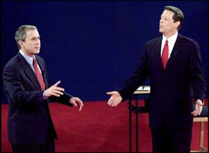 圖文:戈?duì)柵c布什最后一場電視辯論火藥味十足 2000年10月18日 13:52 ![]() 兩人在辯論中手舞足蹈,火藥味十足(據(jù)外電) 中新網(wǎng)香港10月18日消息:美國總統(tǒng)候選人戈?duì)柤皢讨尾际玻Y(jié)束在選舉前最后一場電視辯論,為爭取游離票作最后努力。 兩人一改過往兩場辯論較禮讓的表達(dá)方式,互相狠批對方政策上的錯(cuò)誤。而最新民意調(diào)查結(jié)果顯示,戈?duì)柕谋憩F(xiàn)略勝一籌。 美國有線電視新聞網(wǎng)絡(luò)進(jìn)行的及時(shí)民調(diào)顯示,46%的受訪者認(rèn)為戈?duì)柕谋憩F(xiàn)優(yōu)于喬治布什,44%的受訪者認(rèn)為喬治布什的表現(xiàn)較佳。 今次辯論在圣路易市的華監(jiān)頓大學(xué)議事廳舉行,歷時(shí)90分鐘。而今次與前兩次不同的地方,是140名仍未決定選任何人的觀眾,直接向兩名候選人提問。而今次辯論的主要事項(xiàng),除了外交外,亦會討論到醫(yī)療、教育及稅務(wù)等問題。兩名候選人都在辯論前,為在空難中喪生密蘇里州州長卡納漢默哀。 對經(jīng)歷過不下一千次非正式辯論的戈?duì),在辯論開始后,駕輕就熟地走到臺前,刻意與臺下觀眾拉近距離,保持一貫親民形象。鑒于在第二次辯論中,被人批評他對布什的態(tài)度過分溫和,戈?duì)柦翊沃鲃映鰮簦氏群菖际驳尼t(yī)療計(jì)劃。戈?duì)栔竼讨尾际玻从兄С忠豁?xiàng)提交國會的醫(yī)療法案建議,并指摘布什在保障病人權(quán)益上態(tài)度消極,說一套做一套。 而布什亦不甘示弱,強(qiáng)調(diào)自己是支持病人權(quán)利法案,并強(qiáng)調(diào)為了人民利益,愿意放下歧見,愿意與民主黨合作,共同把政策發(fā)展得最好。 另外,戈?duì)栐谵q論中又標(biāo)榜過去8年民主黨執(zhí)政期間的經(jīng)濟(jì)突出表現(xiàn),并直接喬治布什支持削減富庶家庭稅項(xiàng)的政策,強(qiáng)調(diào)他只會支持削減中等家庭稅收的建議。另外,戈?duì)栆嘞蛴^眾自夸在外交及政治上才能,包括在參眾兩院多年的經(jīng)驗(yàn),令他在軍備控制及外交具豐富經(jīng)驗(yàn)。 而喬治布什就公開質(zhì)疑戈?duì)柕恼\信,認(rèn)為他當(dāng)選后,會維持現(xiàn)有的大政府思想,與民眾完全脫節(jié)。 辯論結(jié)束后,路透社實(shí)時(shí)訪問了6名政治分析家,其中5人均認(rèn)為戈?duì)栐谵q論中較喬治布什優(yōu)勝。分析家認(rèn)為,戈?duì)柕恼f話,在形式以包裝均能取悅觀眾,而他的身體語言,包括盡量站在觀眾席前,均能表現(xiàn)親民作風(fēng)。 相反地,喬治布什保持他一貫呆立的作風(fēng),經(jīng)常站在臺中間發(fā)言,亦令他損失一些分?jǐn)?shù)。而他不肯定的語句,及帶點(diǎn)“口吃”的表達(dá)方式,亦是他失分的主要原因。 不過,兩間電視臺進(jìn)行的民意調(diào)查顯示,雖然兩人的支持率相當(dāng)接近,但喬治布什輕微領(lǐng)先戈?duì)?至6個(gè)百分點(diǎn)。另外,民意調(diào)查亦顯示,仍然有7 %選民未決定取向,而有17%人表示,在選舉當(dāng)日仍有機(jī)會改變主意。(據(jù)TVB) 相關(guān)報(bào)道:圖文:戈?duì)柤安际驳谌嗠娨曓q論開始 相關(guān)報(bào)道:戈?duì)柡托〔际步裉爝M(jìn)行最后一場電視辯論 相關(guān)報(bào)道:三項(xiàng)最新民調(diào)均顯示,布什繼續(xù)領(lǐng)先戈?duì)?/a> 相關(guān)報(bào)道:調(diào)查顯示小布什第二輪電視辯論表現(xiàn)佳 相關(guān)報(bào)道:美國選民認(rèn)為喬治布什比戈?duì)栒\實(shí) |