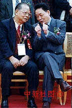 二十日,出席在福建龍巖舉辦的世界客屬第十六屆懇親大會(huì)開幕式的國務(wù)院僑辦主任郭東坡(右一)與香港知名人士曾憲梓親切交談。中新社記者 劉可耕 攝