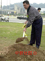 為慶祝澳門回歸一周年,特區(qū)行政長官何厚鏵十七日在蓮花廣場附近種下一棵紀念樹。中新社傳真宗金柱攝