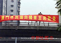圖文:澳門天橋上掛出市民向江澤民主席致意的橫幅 2000年12月19日 15:19 ![]() 18日,澳門天橋上掛出市民向江澤民主席致意的橫幅。中新社記者滿會(huì)喬攝