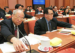 吳康民在全國(guó)人大主席團(tuán)會(huì)議上按表決器