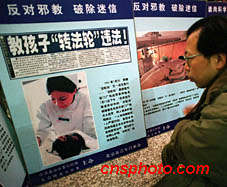 以“反對邪教、維護穩(wěn)定、崇尚科學(xué)、傳播文明”為主題的“青年文明社區(qū)反邪教行動”,二月在北京市全面啟動,揭批“法輪功”的圖片展在北京圖書大廈吸引讀者觀看。中新社圖 陸云 攝