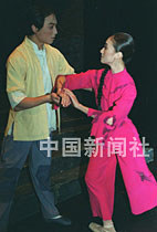 中央芭蕾舞團在三.八婦女節(jié)來臨之際,為北京的觀眾演出一九六四年創(chuàng)作的大型芭蕾舞劇《紅色娘子軍》,圖為常青指路一場戲。中新社記者 張勤 攝