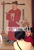 “張大千臨摹敦煌壁畫及大風(fēng)堂用印展”十八日在澳門文化中心舉行,展出著名畫家張大千于四十年代臨摹敦煌莫高窟壁畫的一百三十三幅作品,圖為觀眾觀看一幅五代時(shí)期壁畫的的設(shè)色絹摹本。中新社傳真 宗金柱攝