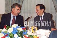 圖文:錢其琛與紐約主流媒體負(fù)責(zé)人共進(jìn)早餐 2001年3月20日 23:02 ![]() 錢其琛與時(shí)代華納首席執(zhí)行官萊文親切交談。作者:胡啟華 中新網(wǎng)紐約3月20日消息(記者 陳建)正在美國進(jìn)行訪問的國務(wù)院副總理錢其琛,今天早晨在紐約與當(dāng)?shù)刂髁髅襟w負(fù)責(zé)人共進(jìn)早餐。圖為錢副總理正與美國在線—時(shí)代華納首席執(zhí)行官萊文親切交談。 |
