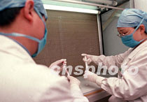 北京大學(xué)第三醫(yī)院人類精子庫建于一九八六年,十五年來對(duì)治療不孕癥、提高人口素質(zhì)、預(yù)防遺傳病和提供生殖保險(xiǎn), 醫(yī)術(shù)精湛。圖為醫(yī)務(wù)人員正在超凈工作臺(tái)進(jìn)行精液處理。中新社記者 張勤 攝