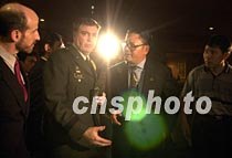 海南省政府外事僑務(wù)辦公室主任陳辭與美國(guó)駐華使館官員八日凌晨二時(shí)返回?谖娜A酒店,一起出席在此間舉行的新聞發(fā)布會(huì)。中新社記者 賈國(guó)榮 攝