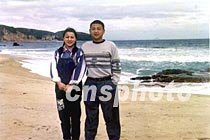中國(guó)飛行員王偉與夫人阮國(guó)琴一九九七年二月十六日在海岸合影。(資料)中新社圖