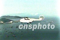 搜尋工作進入第八天,中國飛行員王偉仍下落不明。圖為在王偉落水海域中參加搜救工作的飛機和艦只。中新社圖