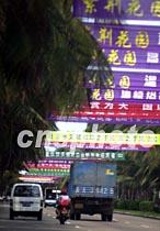 海南省會(huì)?谑腥缃袷敲绹(guó)駐華使館官員一行和美國(guó)軍用偵察機(jī)機(jī)組人員所在之地,市區(qū)主要街道椰林綠葉與鮮艷的橫幅廣告十分奪目。中新社記者 賈國(guó)榮 攝