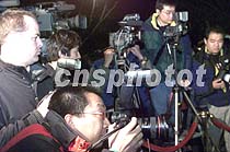 美國(guó)駐華大使普理赫十一日晚在北京就美國(guó)對(duì)撞擊事件的致歉信回答中外記者提問,中外記者紛紛搶拍鏡頭。中新社記者 滿會(huì)喬 攝