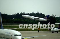 美國(guó)軍用偵察機(jī)的機(jī)組人員十二日清晨搭乘美國(guó)專機(jī),從中國(guó)海南省?谑忻捞m機(jī)場(chǎng)起飛離境。中新社記者 賈國(guó)榮 攝