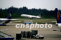 一架美國租用的客機十二日凌晨七時三十九分從中國海南省?谑忻捞m機場起飛離地,搭載美國軍用偵察機的機組人員離境回國。中新社記者 賈國榮 攝