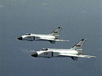 中國飛行員王偉生前所駕戰(zhàn)鷹遨游藍(lán)天(資料圖片) 2001年4月25日 10:26 ![]()