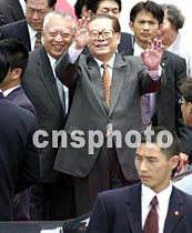 圖:江澤民抵達(dá)香港 2001年5月8日 13:35 ![]() 中國國家主席江澤民5月8日中午乘專機(jī)抵達(dá)香港機(jī)場,參加“2001年《財富》全球論壇”,登車前向采訪的記者招手致意。中新社傳真任晨鳴攝