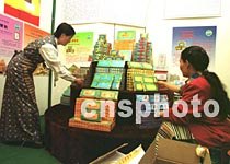 西藏自治區(qū)藏藥廠利用夏季旅游高峰之際,向游人展銷對胃腸疾病、肝炎、關節(jié)炎、腦神經(jīng)系統(tǒng)疾病有良效的藏藥。中新社記者 宋吉河 攝